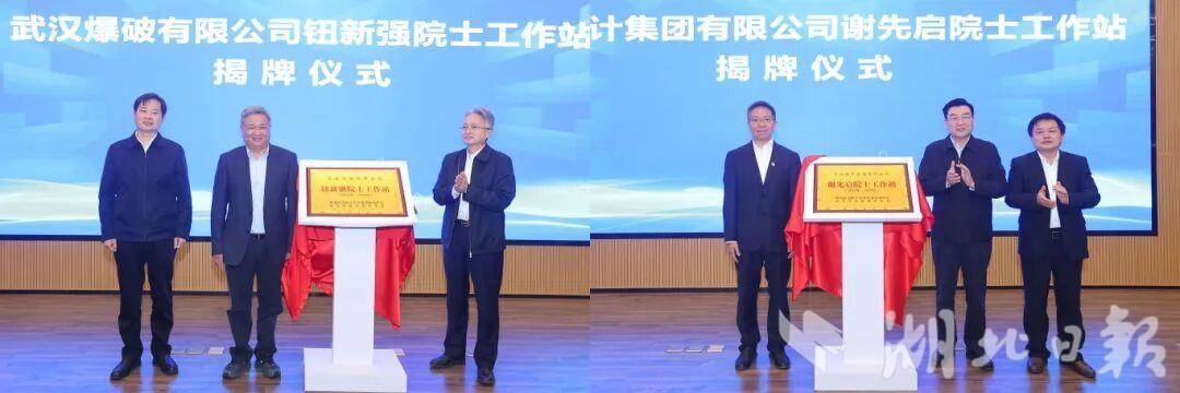 与会领导嘉宾共同为长江设计集团有限公司谢先启院士工作站、武汉爆破有限公司钮新强院士工作站揭牌。