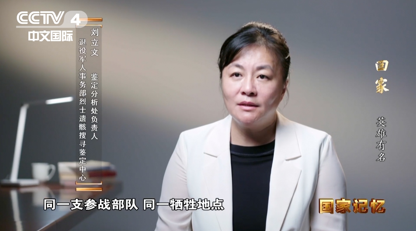 退役军人事务部烈士遗骸搜寻鉴定中心鉴定分析处负责人 刘立文:我们利用确认身份的烈士的同一支参战部队,同一牺牲地点,包括同一发掘地点,在系统之内又进行了烈士亲属的摸排工作。