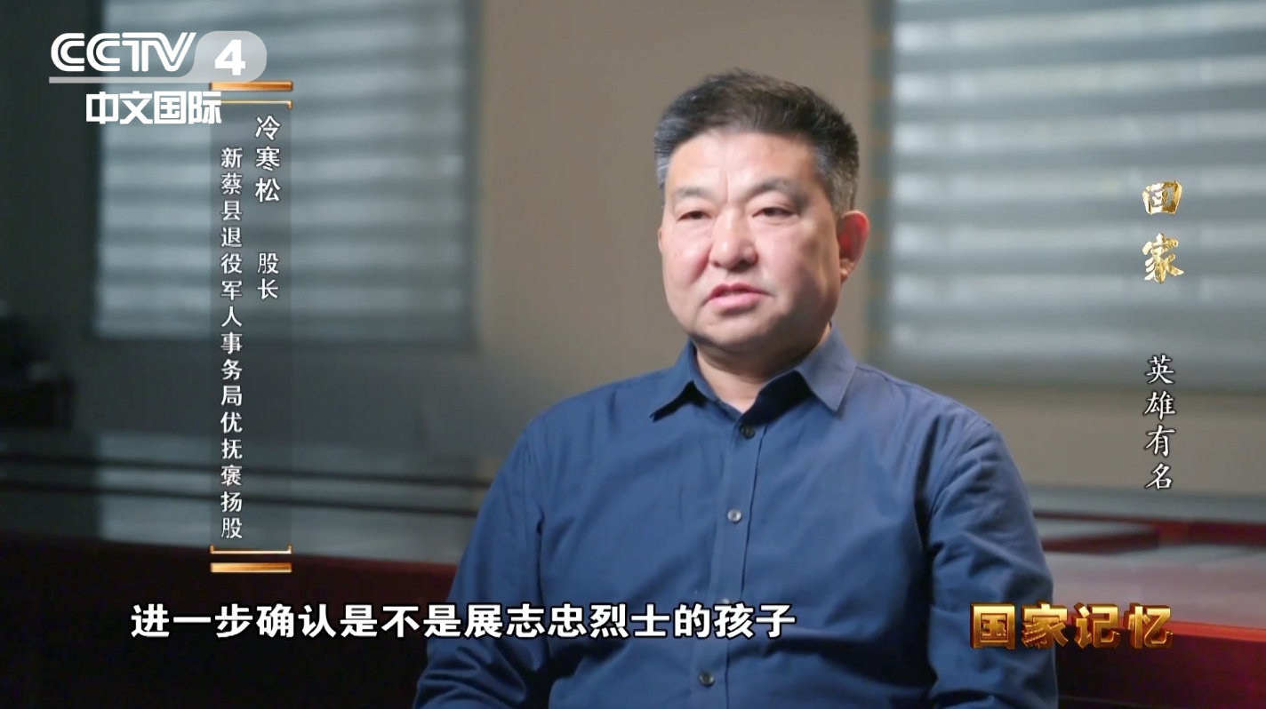 新蔡县退役军人事务局优抚褒扬股股长 冷寒松:确实有两个姓展的,一个叫展超明,另外一个叫展超玉。我们第二天一上班就去走访,进一步确认是不是展志忠烈士的孩子。