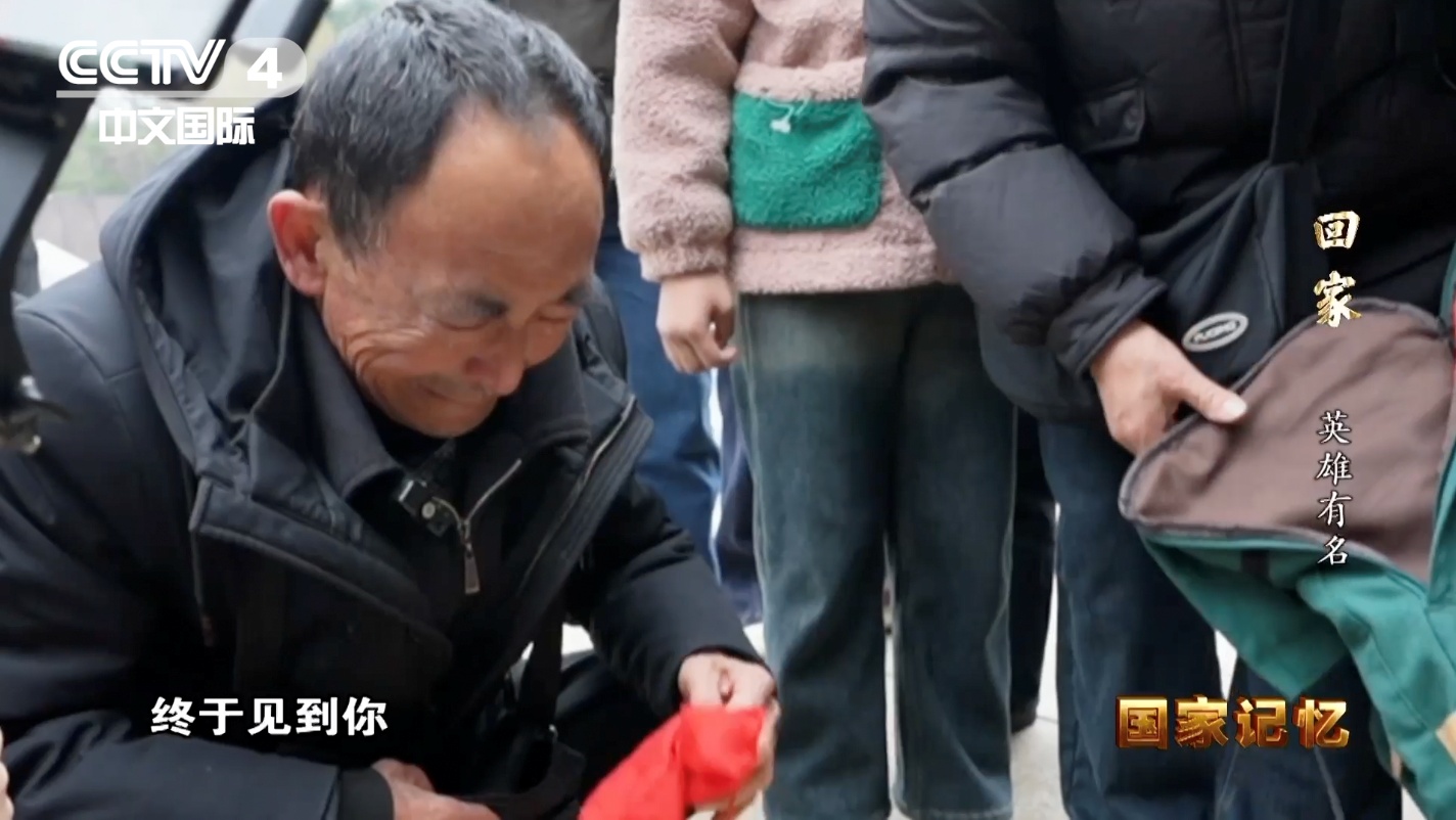 中国人民志愿军烈士方金耀之子 方汉炳:爸爸,终于见到你,这是国家给你发的奖章,我从来没有拿出来过,我心有不甘,没有见到你的真实情况。今天我见到你,我特别地高兴,我也感到很荣耀,你是个坚强的战士。
