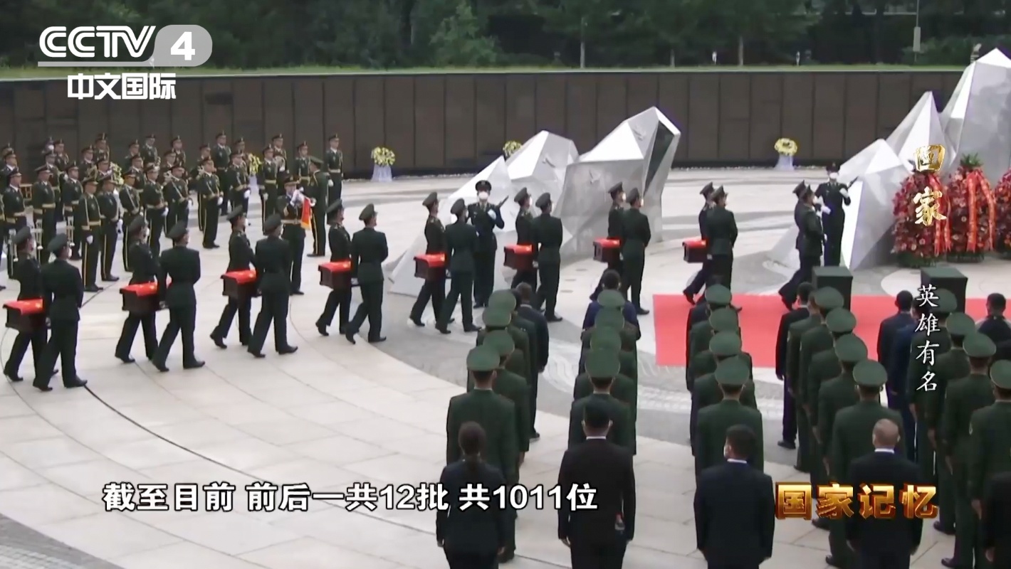 截至目前,前后一共12批,共1011位在韩中国人民志愿军烈士遗骸回到中国,退役军人事务部已先后为其中36位烈士确认了身份、找到了亲人。