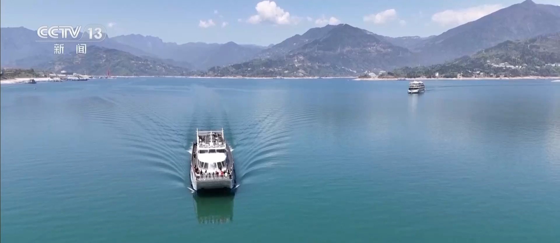 这艘“海巡12931”纯电池动力船。它是采用锂动力电池作为全船唯一动力源,航速可达到29公里每小时,不仅跑得快,航行时无噪声、无燃油废气,相比柴油船,耗能降低三分之二左右,船舶污染物实现零排放。为了让电动船跑得稳、续航足,在长江三峡通航综合服务区,就有多种类型的绿色岸电设施。可以满足多样化的船舶用能需求。