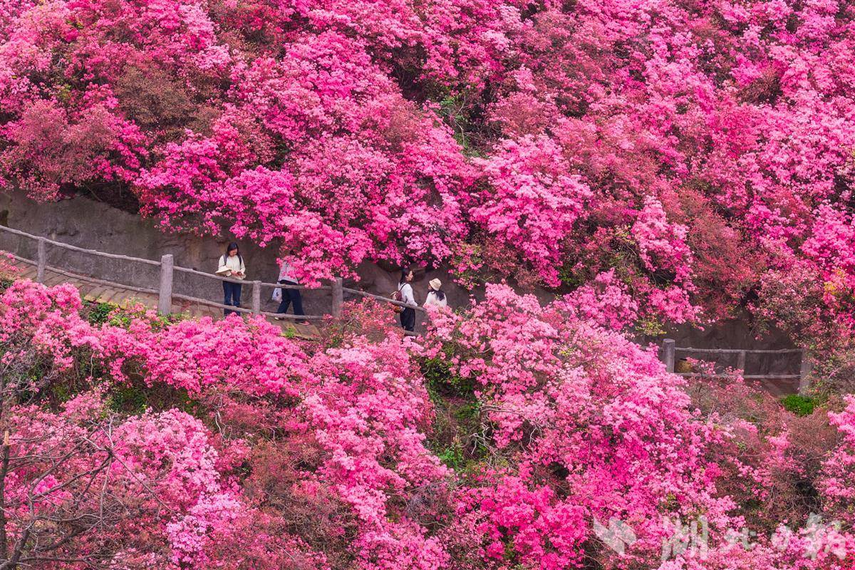 杜鹃盛放游客在花海中畅游打卡。
