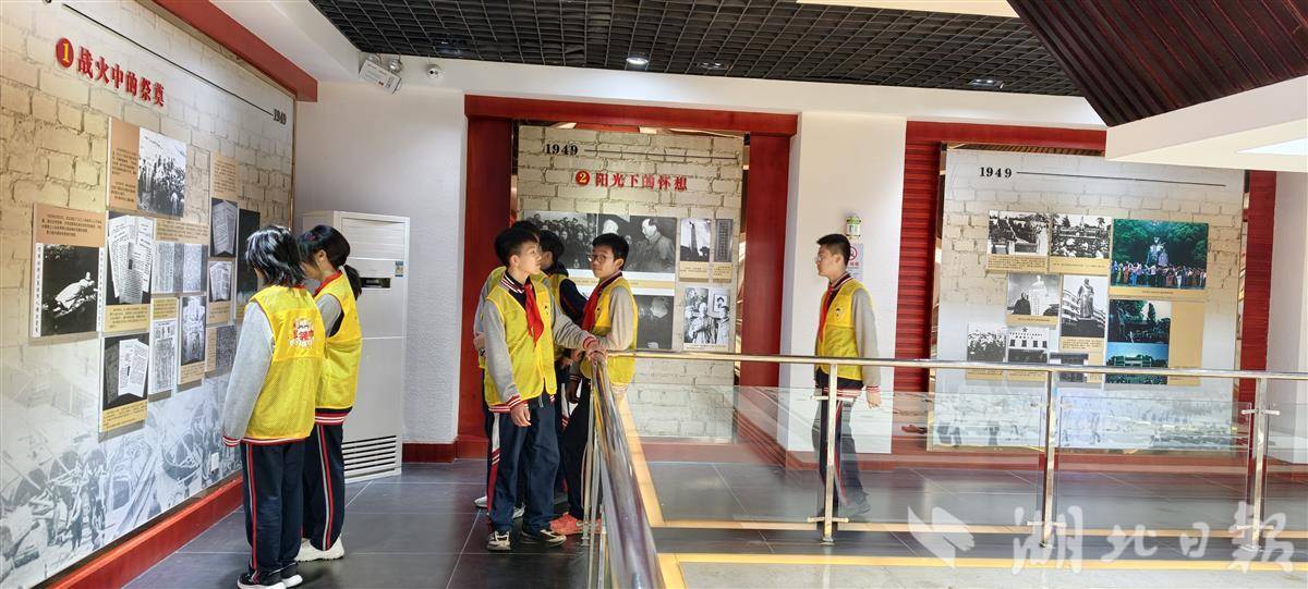 仪式结束后,社区的老党员带领全体党员,面向鲜红的党旗,重温入党誓词。铿锵有力的誓言在陵园上空回荡,也让一旁的学生们深受感染。在随后的纪念馆参观中,同学们驻足在一件件珍贵的实物和一张张泛黄的历史照片前,认真聆听讲解,深入了解施洋烈士为追求真理、为工人阶级解放事业献身的革命历程。