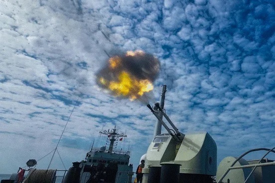 炮弹精准命中海上浮动靶标