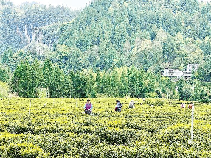 咸丰麻柳坝村,采茶工忙着采摘白茶。(咸丰县融媒体中心供图)