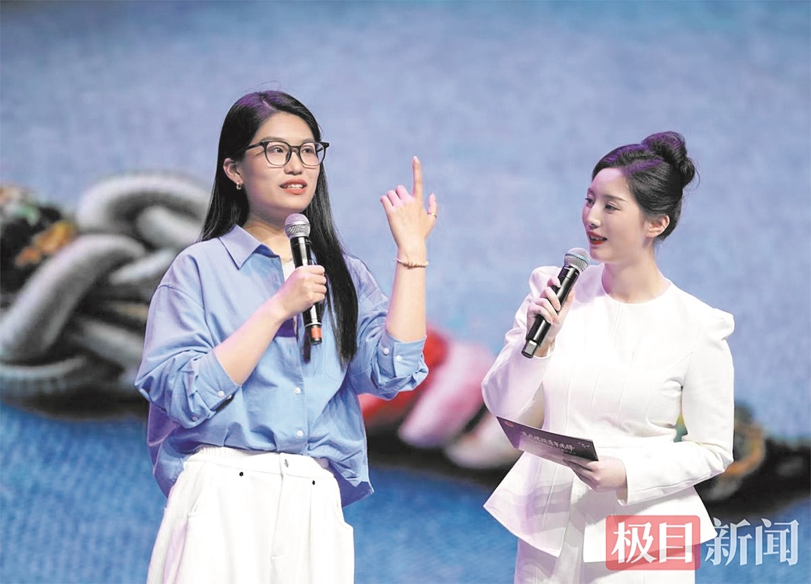 马甜羽向观众展示樱花手链 本版摄影:楚天都市报极目新闻记者肖颢 马鑫