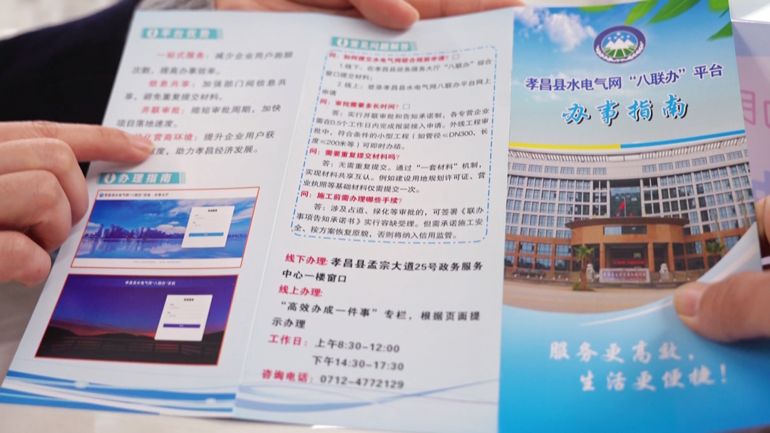 “通过水电气网‘八联办’改革:一是效率提升,实现一窗受理、一份材料、一网联办、一体踏勘、一次验收交底,办理时限缩至1个工作日;二是成本下降,免除企业初装及红线外接入等费用,施工成本降低60%;三是业务融合,实现 ‘八联办+五证同发’等业务融合,以‘高效办成一件事’推动‘高效办成一类事’;四是案例覆盖,成功落地15例‘联合报装’和54例‘联合过户’典型案例,覆盖城区及乡镇。”孝昌县自然资源和规划局开发利用股股长、水电气网“八联办”业务负责人刘存勇说。