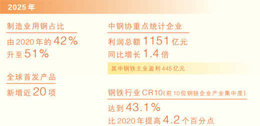 数据可以佐证:2025年,全国粗钢产量9.61亿吨,同比下降4.4%。“十四五”时期,钢铁行业积极探索符合市场规律、促进产业转型升级和优胜劣汰的产能治理新机制,持续压减产量超亿吨,行业布局进一步优化,“反内卷”成效持续显现。2025年,钢铁行业CR10(前10位钢铁企业产业集中度)达到43.1%,比2020年提高4.2个百分点。