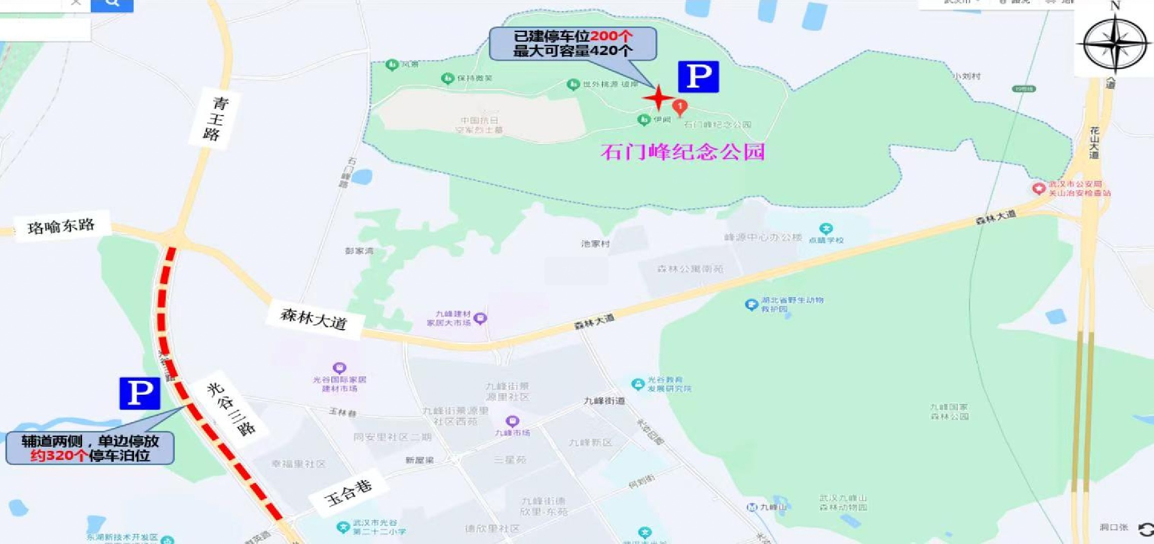 ●交通管理措施:4月4日、5日、6日每日7:00至15:00, 森林大道(光谷四路至青王路)禁止机动车通行(公交车除外)。