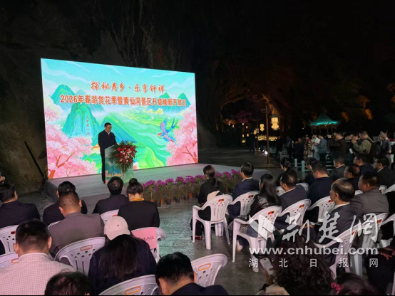 荆楚网(湖北日报网)讯(记者安从斌 通讯员周勇 汪龙 时榴 钟国庆)4月3日上午9点28分,“探秘寿乡·乐享钟祥”2026年春游赏花季推介暨黄仙洞景区升级焕新开放日活动在钟祥市客店镇盛大启幕。
