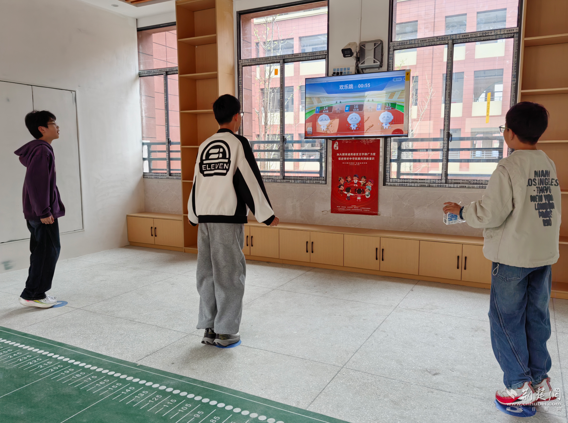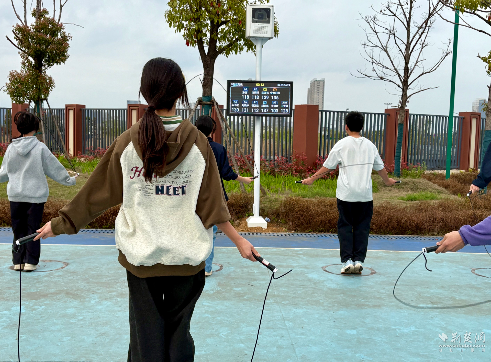 荆楚网(湖北日报网)讯(记者林杉 通讯员张慧芳)“哇!我终于冲到运动榜第一啦!太不容易了!”课间铃声一响起,武汉经济技术开发区军山中学的智慧运动小站热闹起来,同学们自觉列队,跳绳翻飞、仰卧起坐此起彼伏,跑道上奔跑的身影迎着阳光向前。