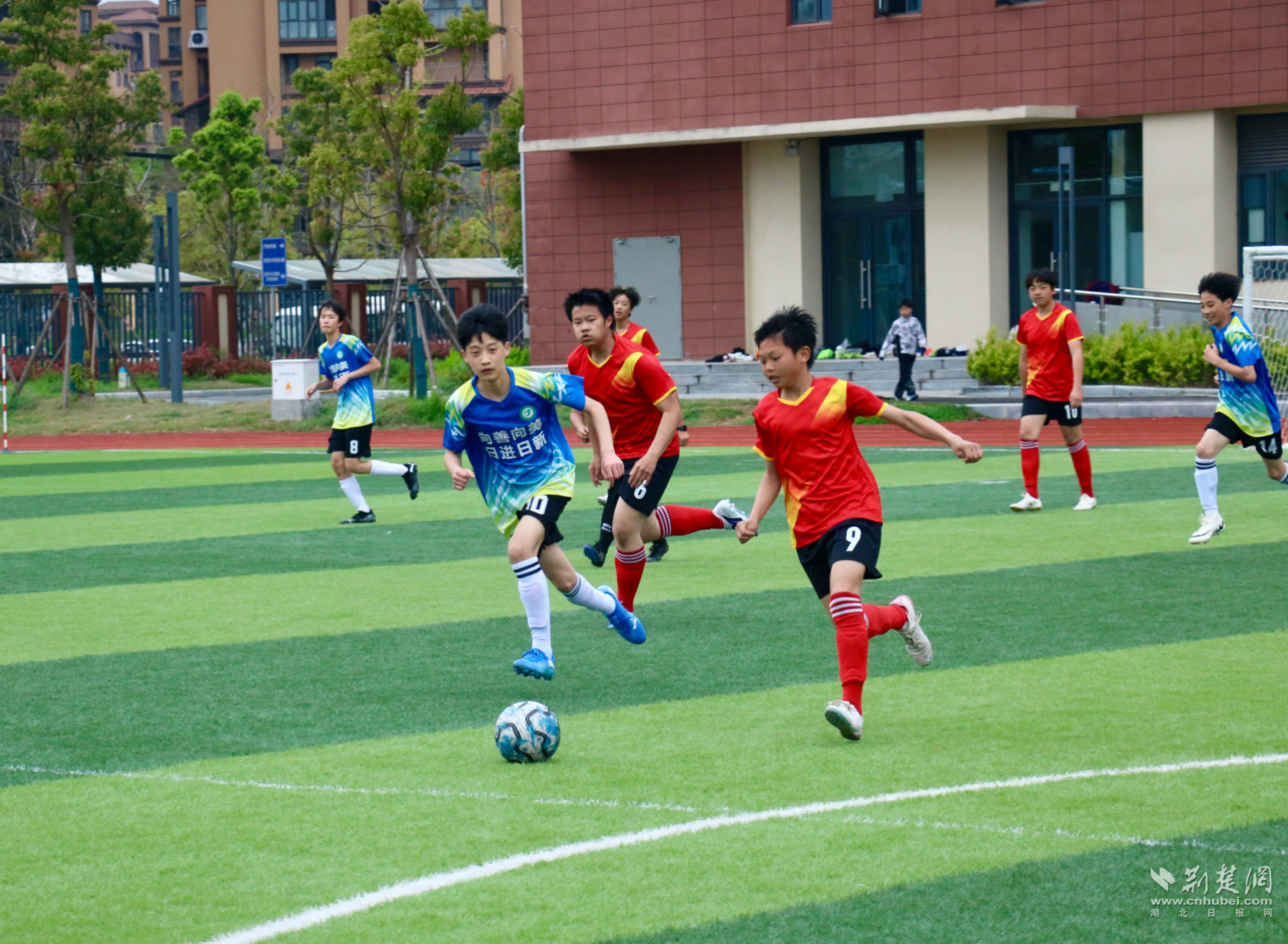 除了常态化的智慧体育锻炼,该校还积极搭建多元化赛事平台,精心组织学子参与区级足球联赛等各类体育赛事,以赛促练、以赛促学、以赛润心。赛场上,学子们意气风发、奋勇拼搏,传球、抢断、射门,每一个动作都凝聚着团队的默契与少年的热血;场外,呐喊声、欢呼声此起彼伏,彰显着校园体育的蓬勃生机。场场赛事不仅锤炼了学子们的强健体魄,增强了团队协作能力,更将永不言弃、奋勇争先的体育精神融入成长血脉,进一步深化了“健康第一”的育人内涵。
