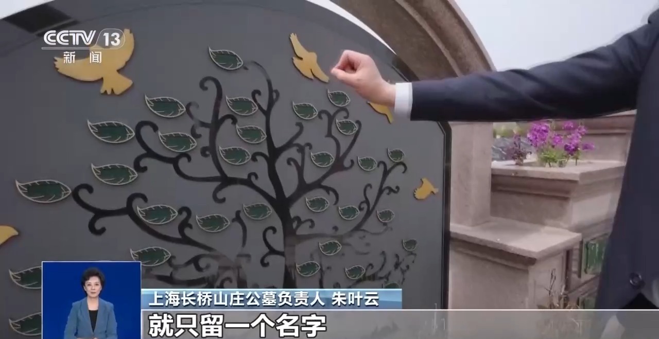 上海长桥山庄公墓负责人 朱叶云:骨灰深埋,不保留骨灰,就只留一个名字。每片树叶就是一个人,把祭祀变成纪念。只要有一个标志性的东西,有一个纪念物、参照物,也同样把怀念之情表达了。