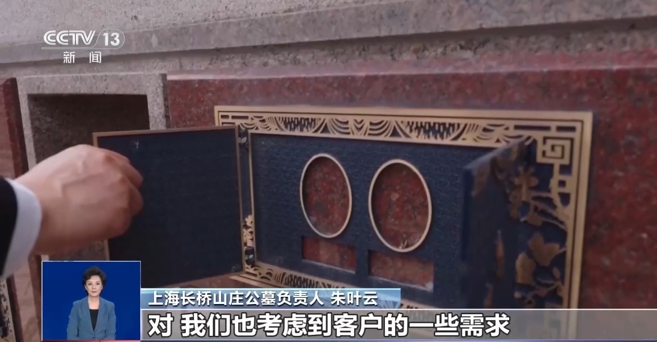 上海长桥山庄公墓负责人 朱叶云:落葬之后,整个园区的外观与现在保持一致。墓碑设有两道门,所有的照片和名字都隐藏在内。我们也考虑到客户的需求,在某些产品上增加了功能性的空间。比如,打开后可以看到照片和名字藏在里面,供台也是隐藏式设计,可以放置一些小水果、电子蜡烛等。这样既满足了功能需求,又从视觉上保持了整洁美观。