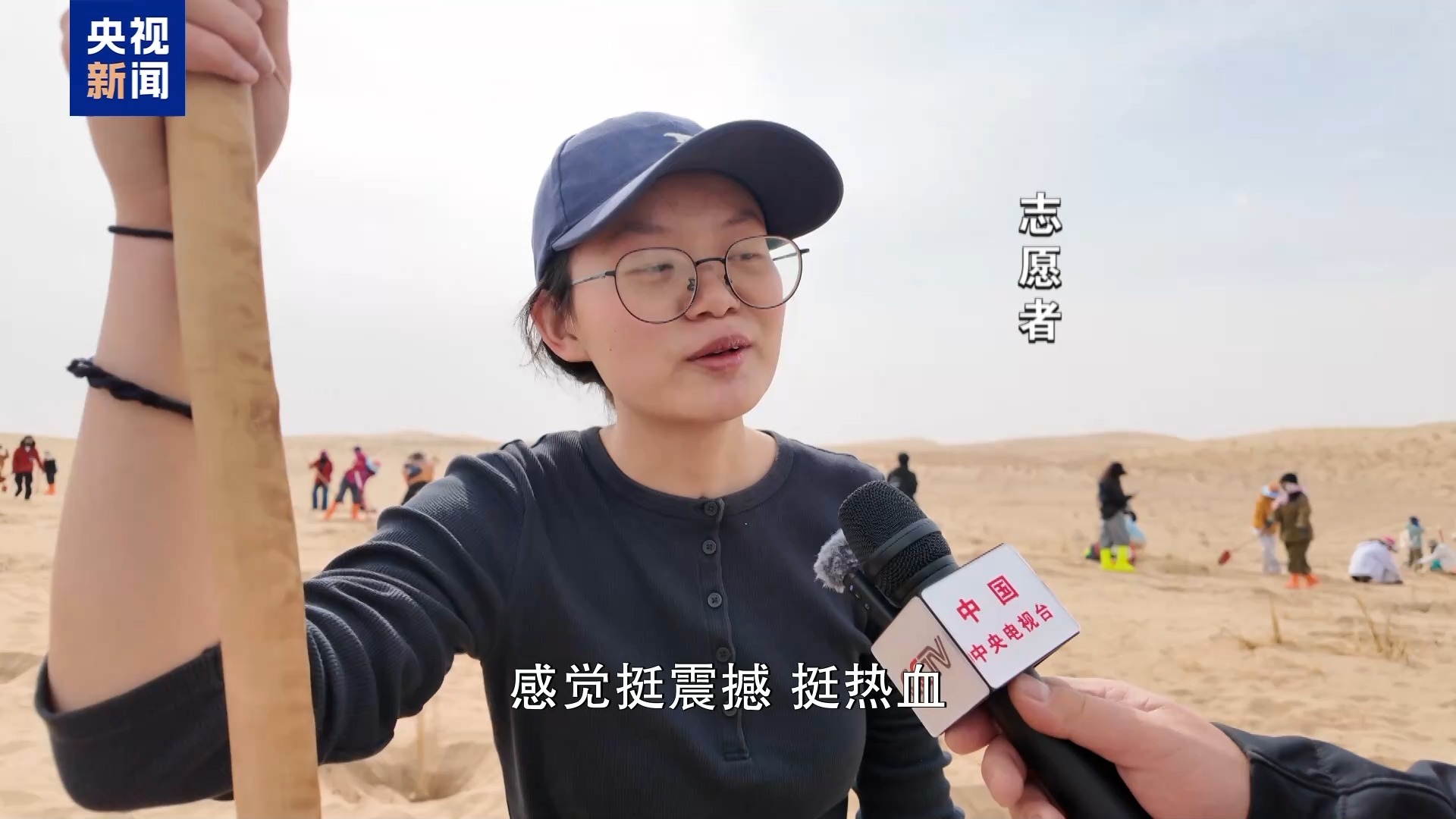 志愿者:绿洲,就希望沙漠里面能够长满梭梭,都变成绿色的。明年一定还会再来的。