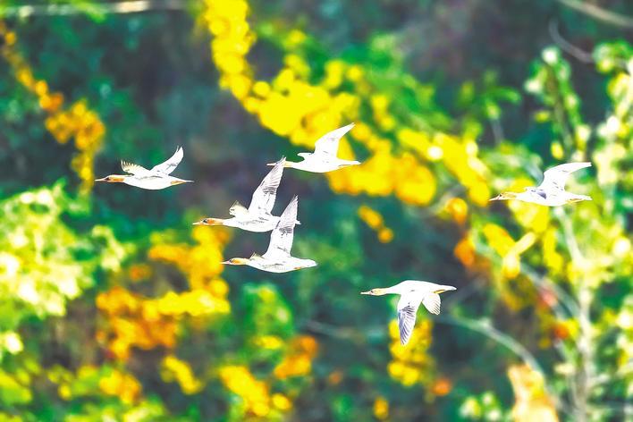 国家一级保护野生动物中华秋沙鸭已连续12年来远安越冬。 (远安沮河国家湿地公园管理处供图)