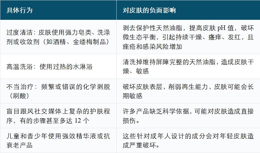 △导致皮肤屏障受损的常见行为及后果
