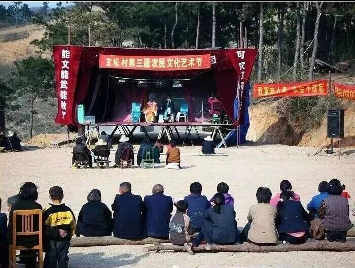第一年,黄庆稳带着大伙儿在草地上装好音箱、搭起戏台,扯起“玄坛村第一届农民艺术节”的红布,这场农民艺术节就正式开演了。这种充满“土味”的文艺形式,一亮相就吸引了全村老少的围观。
