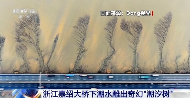 清明假期,一段网友拍摄的“浙江嘉绍大桥下潮水雕出奇幻潮汐树”的画面在网上刷屏。