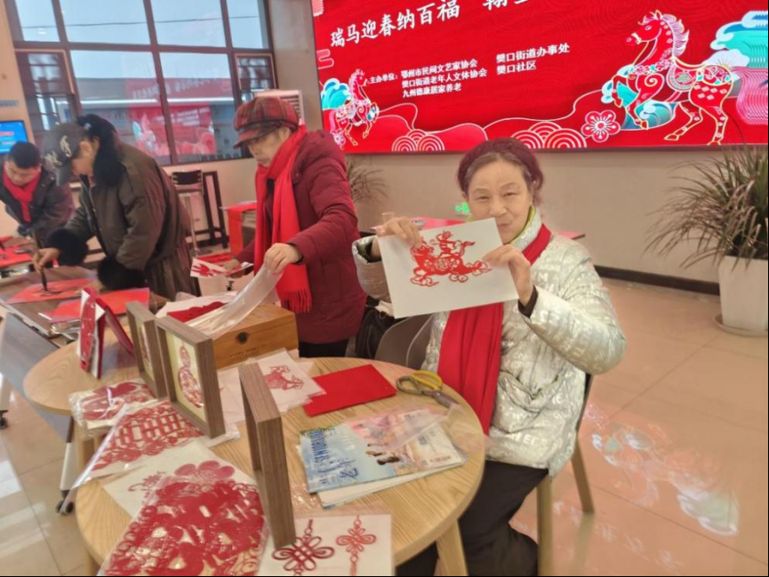 腊八节前夕,樊口社区老年人在居家养老服务中心剪窗花、品腊八粥,感受传统韵味与温情。周婷 摄