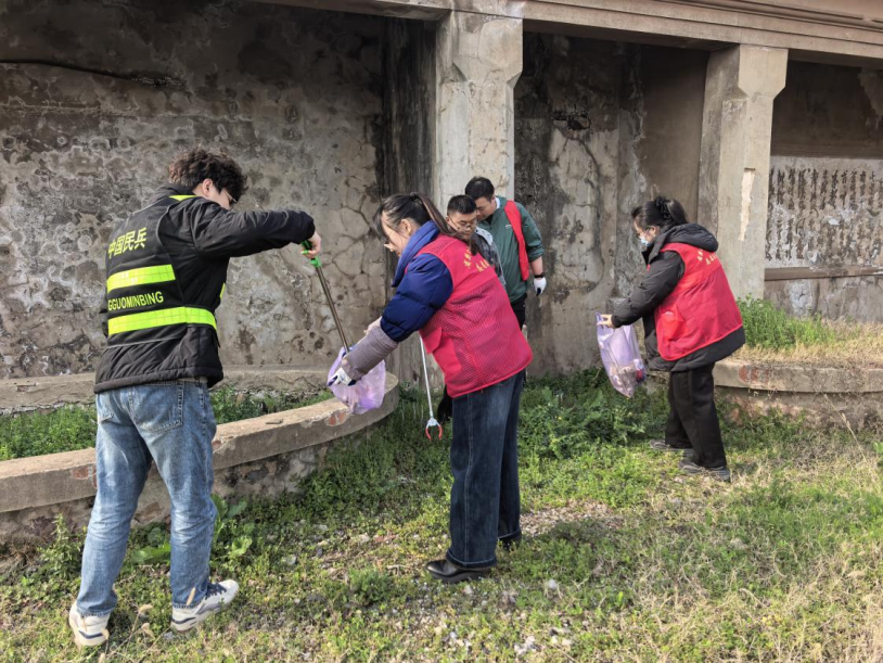 樊口社区志愿者维护小区卫生,为居民打造干净整洁的居住环境。赵怡 摄