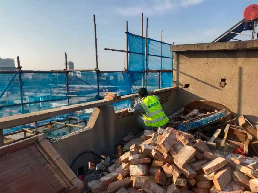樊口社区三医院老旧小区改造项目施工现场。周婷 摄