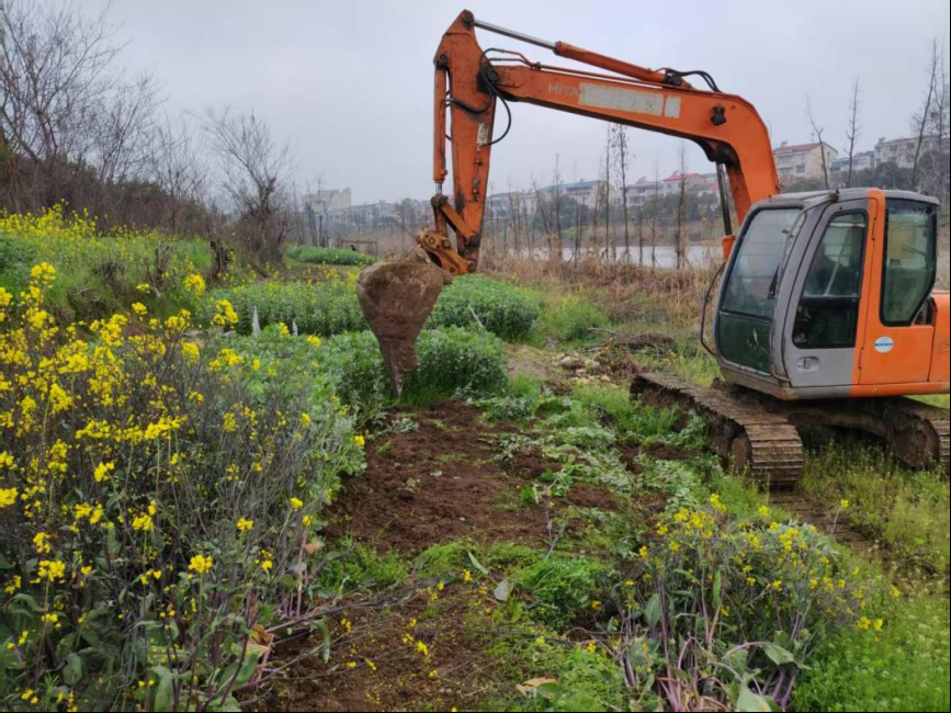 清理长港河沿岸菜园、钓鱼台等设施,切实守护长港河生态环境。王俊 摄