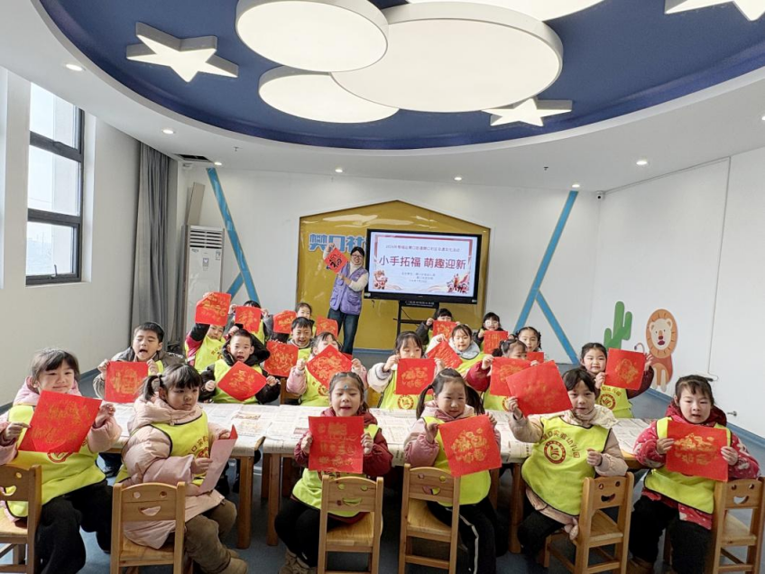 在樊口社区儿童之家,小朋友们用传统拓印技艺迎新年。周婷 摄