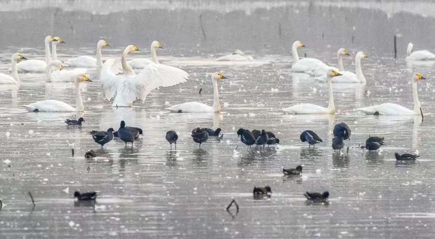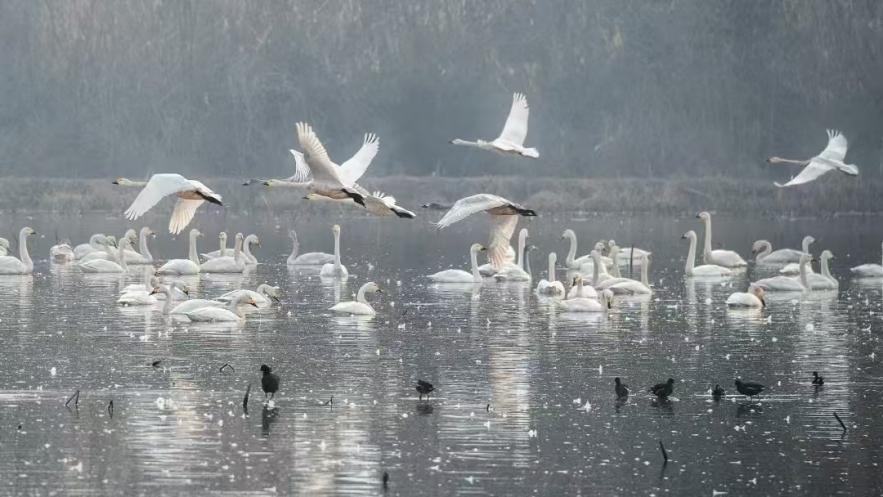 范墩村生态环境持续提质,年初首次迎来数千只天鹅栖息。熊炜 摄