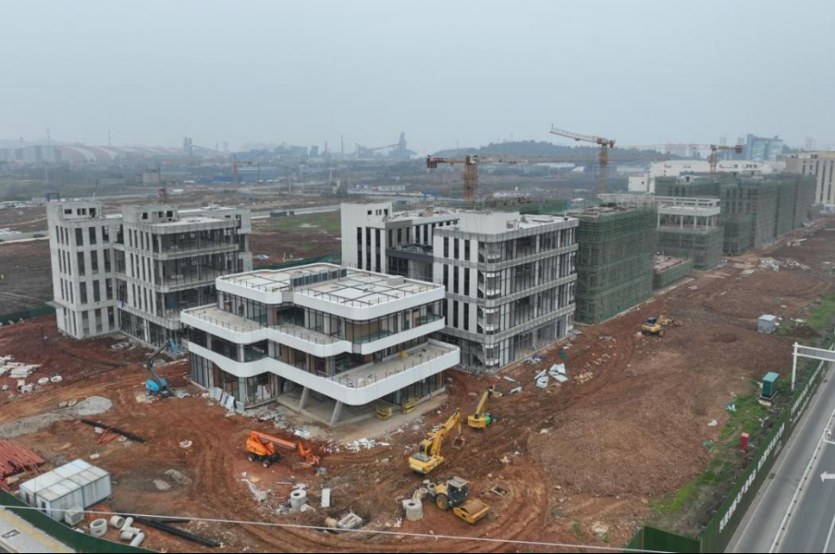 湖北铁佑科技项目办公楼主体已封顶,钢结构厂房正在组装中,项目顺利推进中。刘思绮 摄
