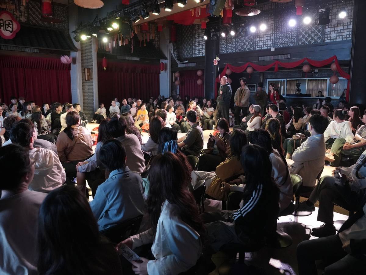 湖北日报讯(记者唐雪舟、通讯员蔡邸昕)4月5日,由武汉说唱团出品的沉浸式悬疑喜剧《风声鹤“立”》在快活里剧场迎来第200场演出。该剧创新采用十字形舞台与360°旋转座椅设计,观众与演员距离不足1米,现场互动可直接影响剧情走向,实现“沉浸式观演”升级。自2024年12月首演以来,该剧以160座的小剧场撬动超452万元票房,在一年多时间内完成200余场常态化演出。