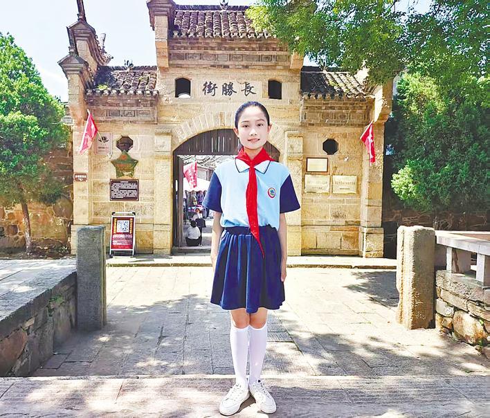 在七里坪长胜街,列宁小学学生方祎婷唱起《八月桂花遍地开》。 (列宁小学供图)