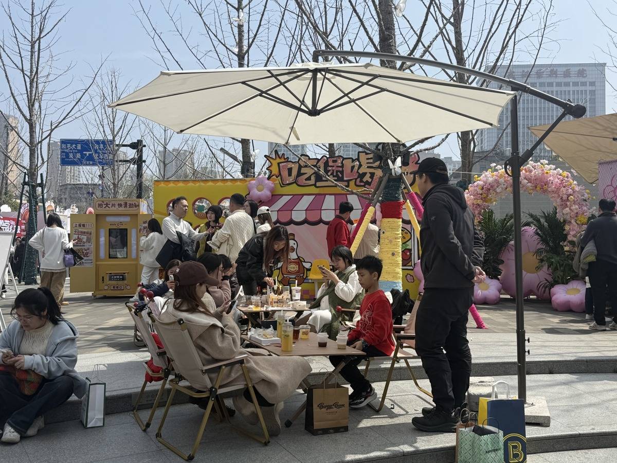 武昌万象城贤胜路沿路铺开130余棵樱花树,正值武汉樱花季,粉白花瓣随风飘落,铁板上滋滋冒油的汉堡与枝头的烂漫形成奇妙反差——这是属于武汉限定版的浪漫。现场设有5大休憩点,免费饮品不限量供应,超过1000把露营椅和野餐垫随意取用。每周末的牧野音乐节在花丛间奏响,3200余株阿勒泰风格真花在微醺山谷共筑600㎡北疆花园。