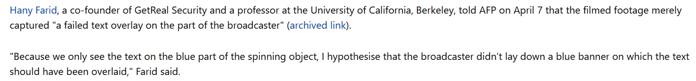 针对这段引发误读的视频,美国加州大学伯克利分校教授、数字取证专家哈尼·法里德对法新社表示,画面所显示的异常,更可能是转播方在字幕叠加时出现了技术错误,而非拍摄场景本身存在问题。