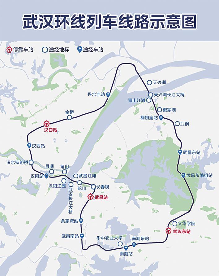 6元环线火车始于3月14日开行的“武汉东至武汉东”。6元钱,2小时旅程,串联起汉口站、武昌站、武汉东站,沿途可欣赏长江大桥、黄鹤楼、龟山电视塔、天兴洲油菜花、武钢老厂区等景观,一上线,就受到全国各地游客及武汉市民欢迎。