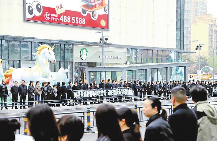 4月3日清晨,宜都细雨蒙蒙。送灵车队缓缓驶入城区,街道两旁黑底白字“迎接英雄回家”“致敬消防烈士邓勇”的横幅格外醒目,数千名群众自发手持白菊,夹道伫立。队伍中既有白发苍苍的老人,也有稚气未脱的小学生,大家顶着冷雨,无声地送别这位28岁的好儿郎。7时20分,运载着邓勇烈士骨灰的车辆,从宜都市殡仪馆缓缓启程,驶向宜都市烈士陵园。当灵车驶入万达广场路段时,等候已久的群众纷纷驻足肃立,身着制服的民警整齐列队、脱帽敬礼,形成一条庄重的“送别长廊”,以最质朴真挚的心意,送英雄最后一程。