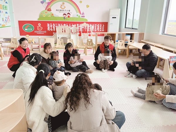 除了专业的医育结合托育中心,荆州市还将托育服务触角深度延伸至社区。记者随后来到荆州区八岭山镇铜岭村的“向日葵亲子小屋”,约40平方米的空间宽敞明亮,绘本、玩具、小桌椅等设施一应俱全,志愿者正带着家长和孩子们玩亲子小游戏。负责人严娅娟介绍,“向日葵亲子小屋”是面向社区0—3岁家庭的免费公益场所,配备了各个月龄宝宝的专属游玩、学习设施,提供亲子互动指导、育儿咨询等服务,让孩子们有一个安全好玩又专业的活动空间,也让家长能带着孩子参与集体互动。