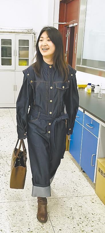 今年1月,王金凤团队研发出4.5平方米的中试循环布料,并交由有设计学基础的杨晨进行设计。作为北京服装学院与武汉纺织大学联合培养的研究生,杨晨接到任务后十分兴奋,花费4周时间精心设计、缝制出一款时尚、新潮的女性牛仔衣,最终让团队眼前一亮。3月30日,这款新衣被带回武汉。