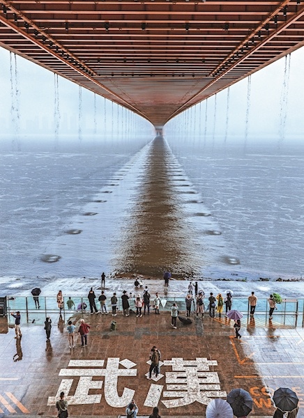 4月9日12时许,一场暴雨袭来,武汉杨泗港长江大桥惊现“雨帘”奇景,汉阳桥头下聚集了大量追“雨帘”的人。楚天都市报极目新闻记者朱熙勇摄