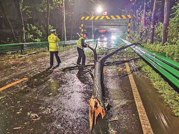 民警清理倒伏的大树 通讯员供图