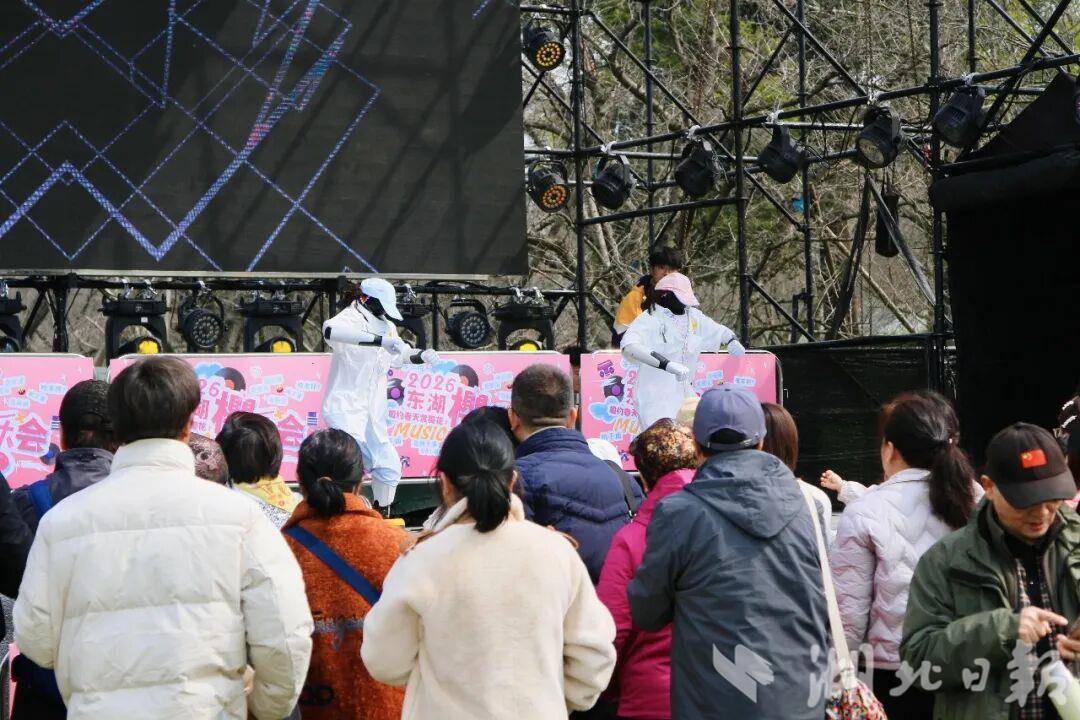 回首今春,樱园焕新升级、亮点迭出,处处皆藏春日新意。园区精心引种特色樱花,花枝缀满粉白,清雅脱俗、韵味独具;北区空间全新拓展,赏樱动线进一步优化延伸,移步易景,让每一次游园都能邂逅不期而遇的美好。同时,趣味机器人互动体验、多场浪漫樱花音乐会轮番上演,花香萦绕间旋律悠扬,自然盛景与人文雅趣相融相生,为广大游客带来沉浸式赏樱新体验,也让东湖樱花园成为今春武汉备受追捧的热门赏花目的地。