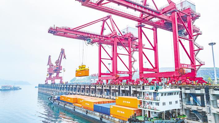 “注意角度,里面装的是戈碧迦光电公司急需的500吨原料碱,轻拿轻放!”调度员赵俊涵盯着吊臂轨迹,用对讲机提示道。码头上,其他标注着成品纸、橡胶的集装箱也并未久留,从卸船到装车一气呵成,迅速驶向岸上公路。“这一批货物在秭归卸货后,走公路转运至宜都港,再装船直抵镇江,最终销往国际市场。”赵俊涵介绍,这种“水公水”翻坝转运新模式完全绕开了三峡船闸,让货物过坝从“人等闸”变成了“货等车”。