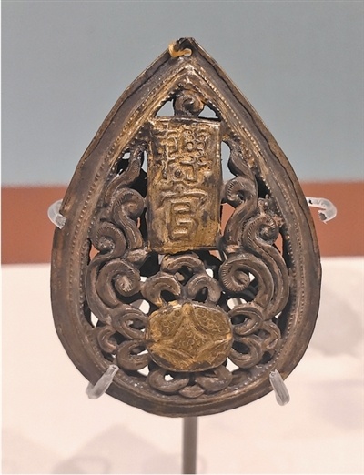 福建福州北郊茶园山宋墓出土鎏金银“转官”镂空花卉纹帔坠。