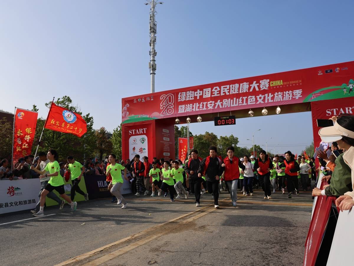 湖北日报讯(记者刘毅、通讯员胡文慧、彭佩)4月12日8时零8分,随着国家体育总局社会体育指导中心主任刘君柱一声令下,2026年绿跑中国全民健康大赛湖北红安站正式开跑,这也是该项国家级赛事今年的全国首站比赛。3000名来自全国各地的跑友从“黄安古城”出发,在红色热土上展开了一场别开生面的“红色健康跑”。