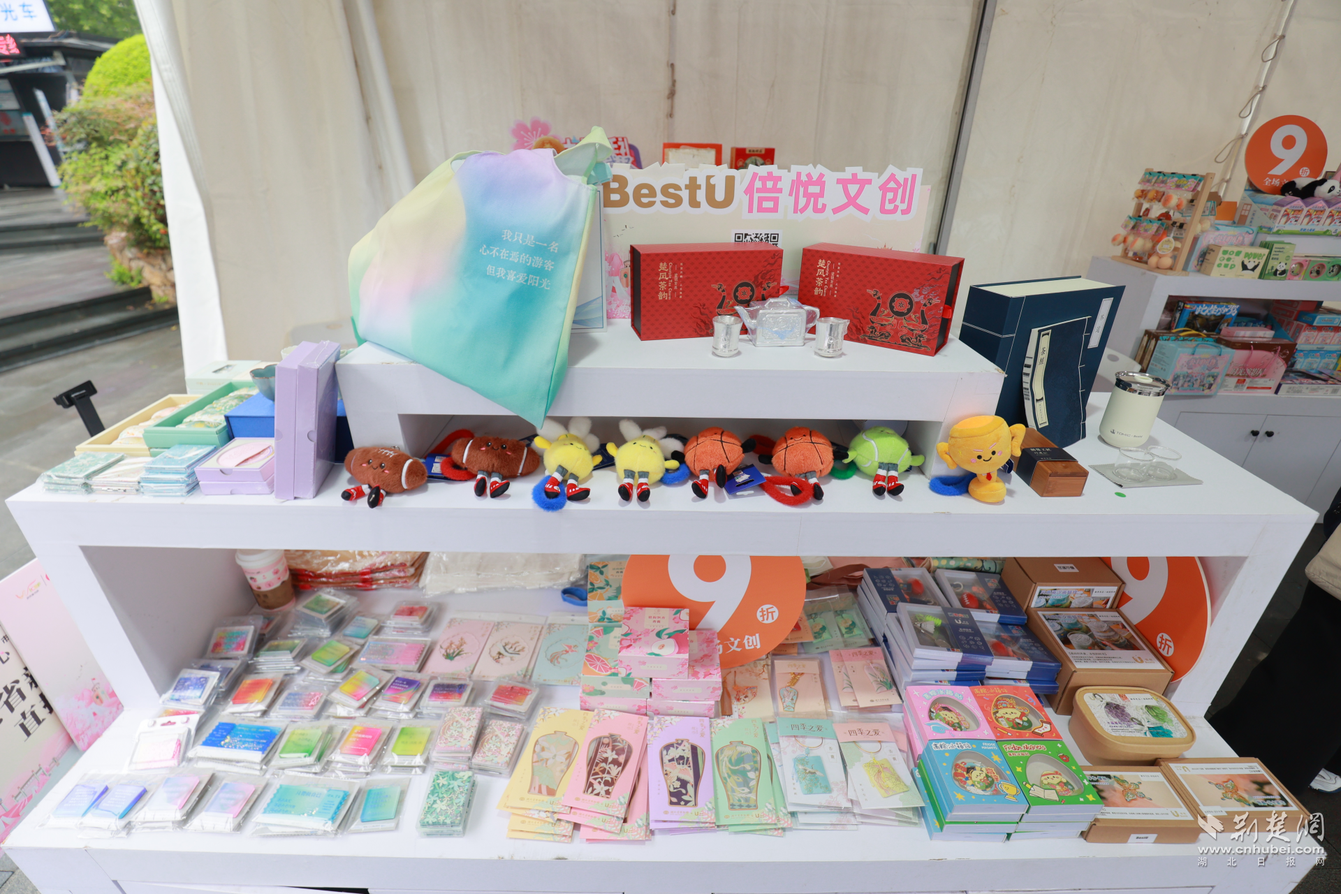 同步推出600余种文创好物,融合樱花春日美学、荆楚非遗技艺、AI 健康生活等元素,樱花主题伴手礼、特色茶歇、植物拓印等产品深受追捧,让书香文化可感可触、可赏可藏。