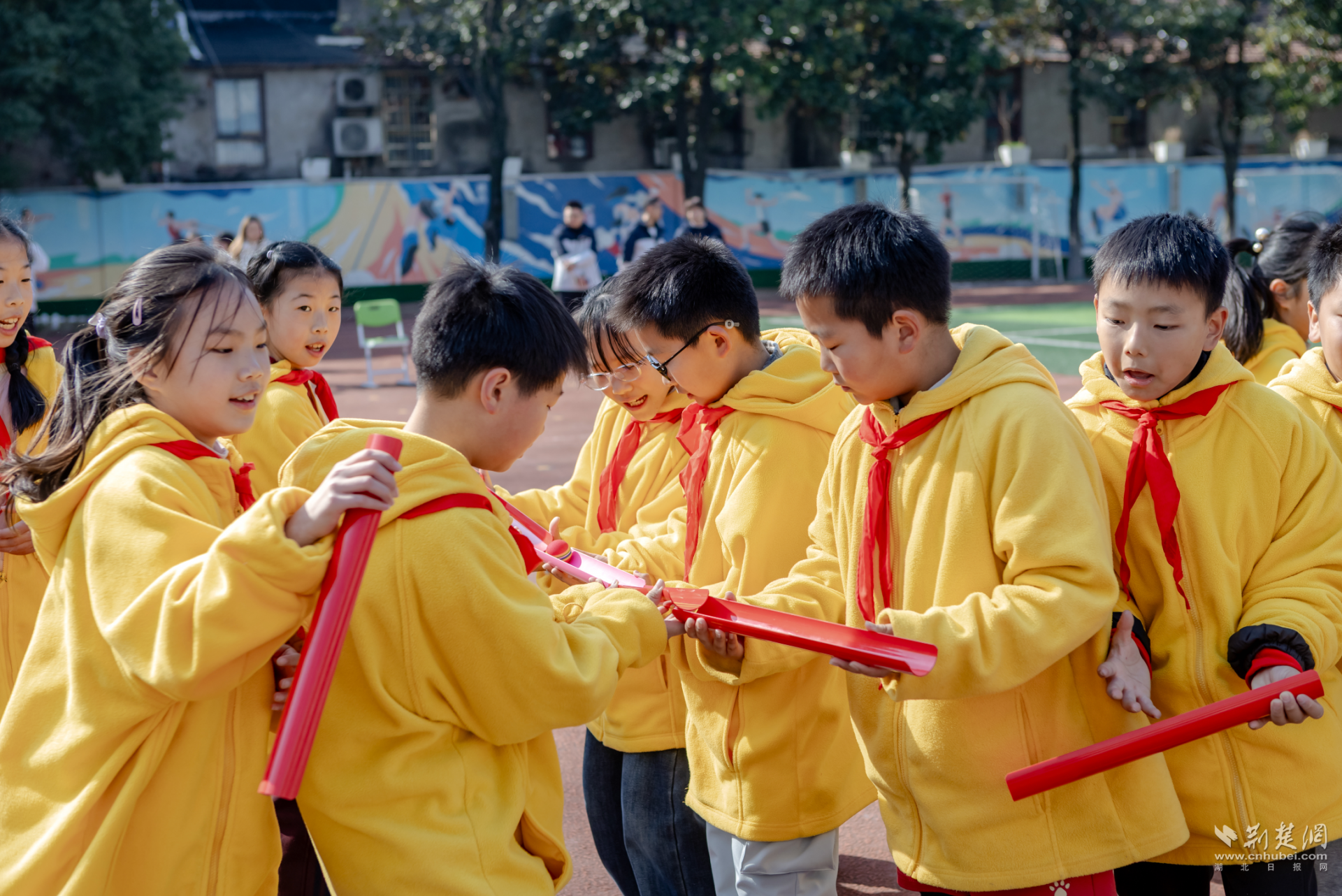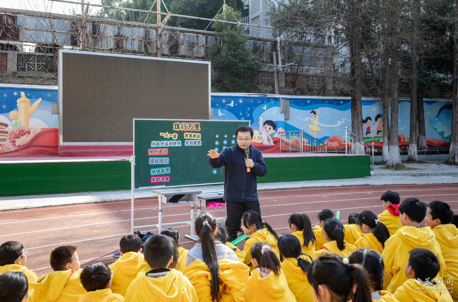荆楚网(湖北日报网)讯(记者林杉 通讯员陈雅婷)近日,武汉经济技术开发区新城小学区级跨学科视导课精彩开讲。该校左威执教团队拓展游戏课《珠行万里》,将体育与心理健康教育深度融合,以趣味实践打造沉浸式育人课堂,课堂氛围热烈活跃,斩获视导专家、校内师生一致好评。