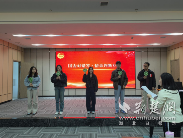 理论学习之后,高能互动环节将现场气氛推向高潮。7个小组同台竞技:“大家来找茬”精准识别日常场景中的保密隐患,“极速问答”抢答紧张刺激,“情景判断”全员举牌判断、现场交流。三项游戏层层递进,将抽象的国安知识融入互动比拼。青年们在轻松愉悦的氛围中巩固知识、凝聚共识。