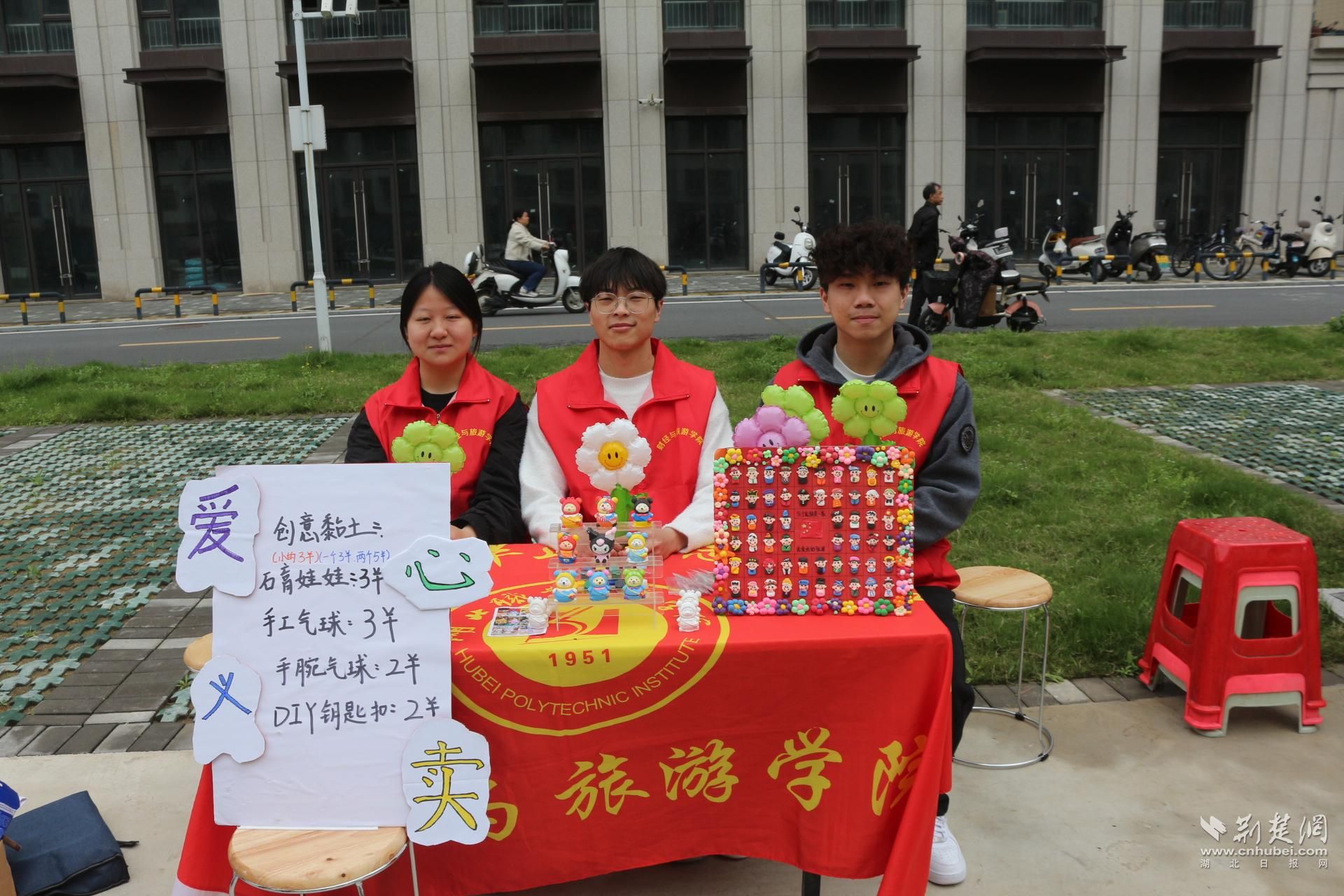 爱心义卖展区摆放了志愿者提前制作的手工艺品,包括串珠钥匙扣、折纸花篮、编织杯垫等,每件标价5元至15元不等。一位带着孙女的中年妇女买了一个红色串珠钥匙扣,说“小姑娘做得蛮好看”。义卖所得将用于后续社区困难老人慰问。