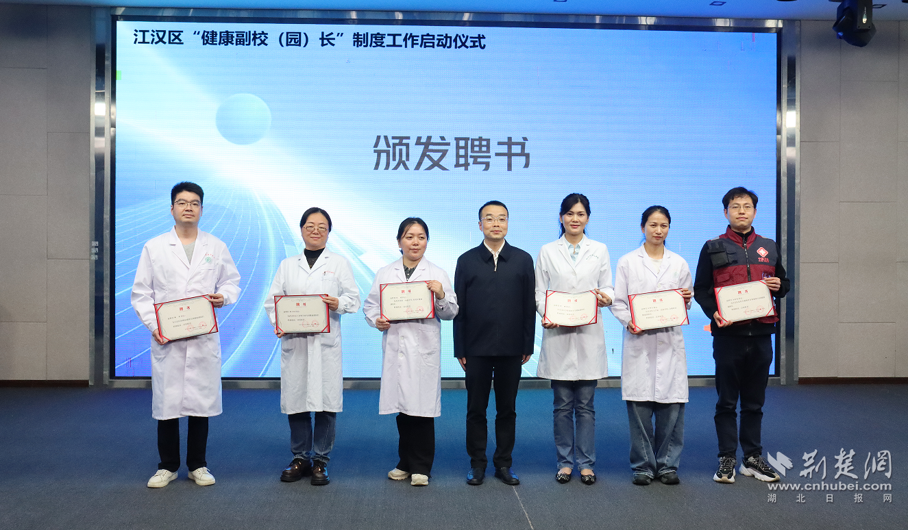 荆楚网(湖北日报网)讯(记者何鹏 通讯员李黎、杨莉、姚阳)4月14日下午,江汉区“健康副校(园)长”制度工作启动仪式在江汉区红领巾实验学校举行。随着首批健康副校(园)长代表接过聘书,全区118所中小学、幼儿园正式迎来专业医护力量驻校履职,标志着江汉区在深化医教协同、守护青少年身心健康的道路上迈出了坚实一步。